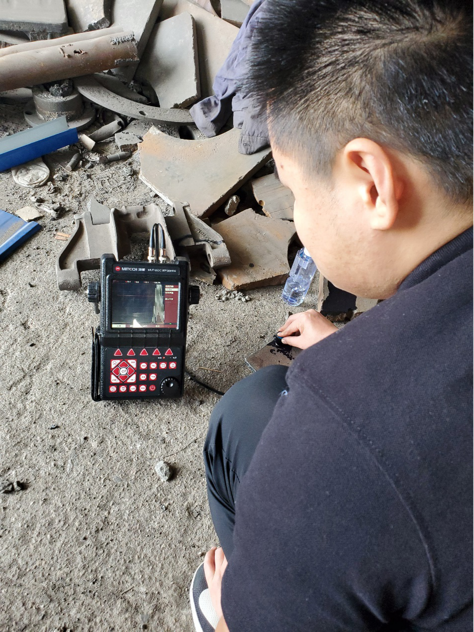 該單位是當(dāng)?shù)匾?guī)模最大的耐磨材料國企公司,對產(chǎn)品質(zhì)量有嚴(yán)格的標(biāo)準(zhǔn)。本次上門交貨演示的超聲波探傷儀,是用于該廠新項(xiàng)目引進(jìn)的一批原鑄件材料進(jìn)行 無損探傷,該原料日后用于耐磨機(jī)襯板的制作,不能存在缺陷隱患,以保護(hù)球磨機(jī)筒體,避免礦料、物料直接沖擊摩擦。如襯板里面有較大氣孔夾雜等缺陷,會造成襯板斷裂等事故,另外還需檢測一些20mm左右的較薄板材。