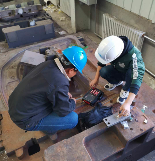 隨后美泰工程師隨李工來到工廠對現(xiàn)場工件做硬度及缺陷檢測,在現(xiàn)場美泰工程師使用里氏硬度計MH500對現(xiàn)場工件進行了硬度測試,最終顯示數(shù)值也十分穩(wěn)定,并且MH500里氏硬度計支持現(xiàn)場打印測量結(jié)果更便于數(shù)據(jù)留存記錄。