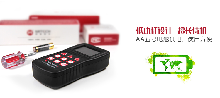 兩節(jié)普通5號電池供電,可連續(xù)工作不小于100小時;具有自動屏幕待機、自動休眠、自動關(guān)機等節(jié)電功能