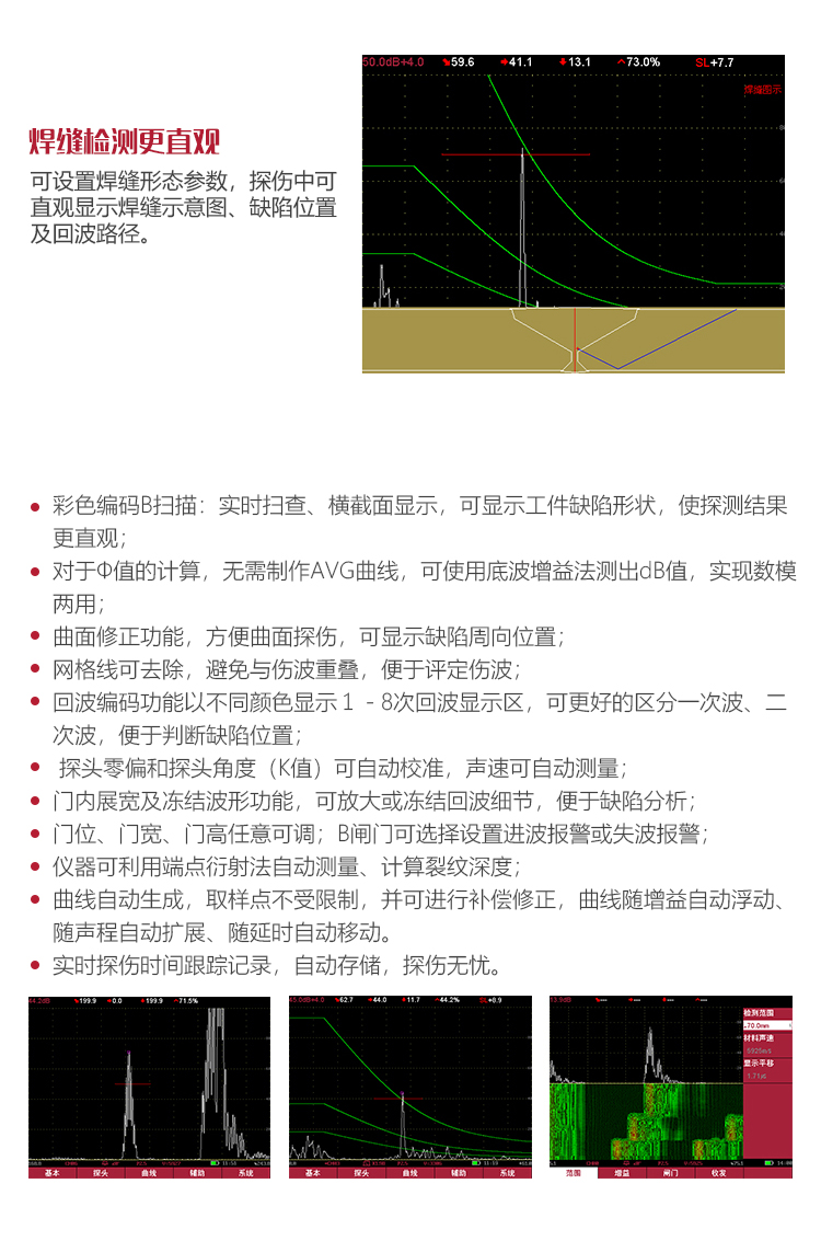 | 定位 | 實時顯示缺陷水平、深度(垂直)、聲程位置 |