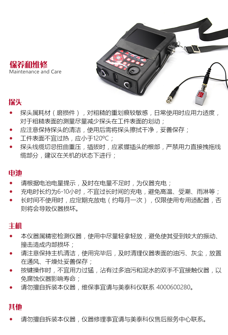 | 美泰超聲波探傷儀附有專用的隨機裝箱資料。包括產(chǎn)品合格證、保修卡、產(chǎn)品說明書、裝箱清單。隨機資料采用專用的銅版紙印制,說明書圖文設(shè)計,美觀、易懂、便于長久保存。注:美泰品牌系列產(chǎn)品的隨機資料均可登陸www.zg6899.com下載電子版。 | |
