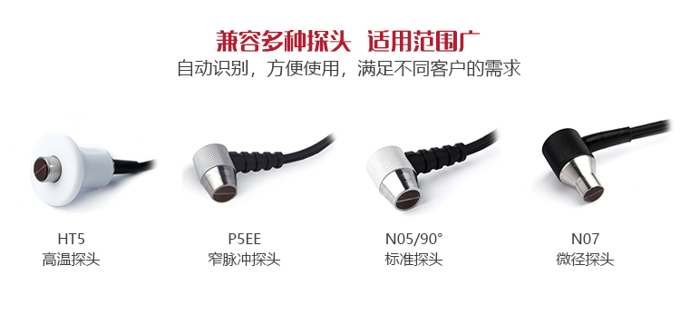 | 探頭直徑 | 測厚探頭NO5直徑10MM、微晶探頭N07直徑6MM、高溫探頭HT5直徑12MM、窄脈沖測厚探頭P5EE直徑10MM、粗晶探頭直徑12MM |