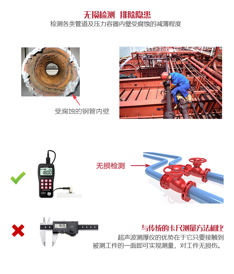 配備窄脈沖復(fù)合材料晶片的高精度探頭,盲區(qū)小、測量精準(zhǔn)