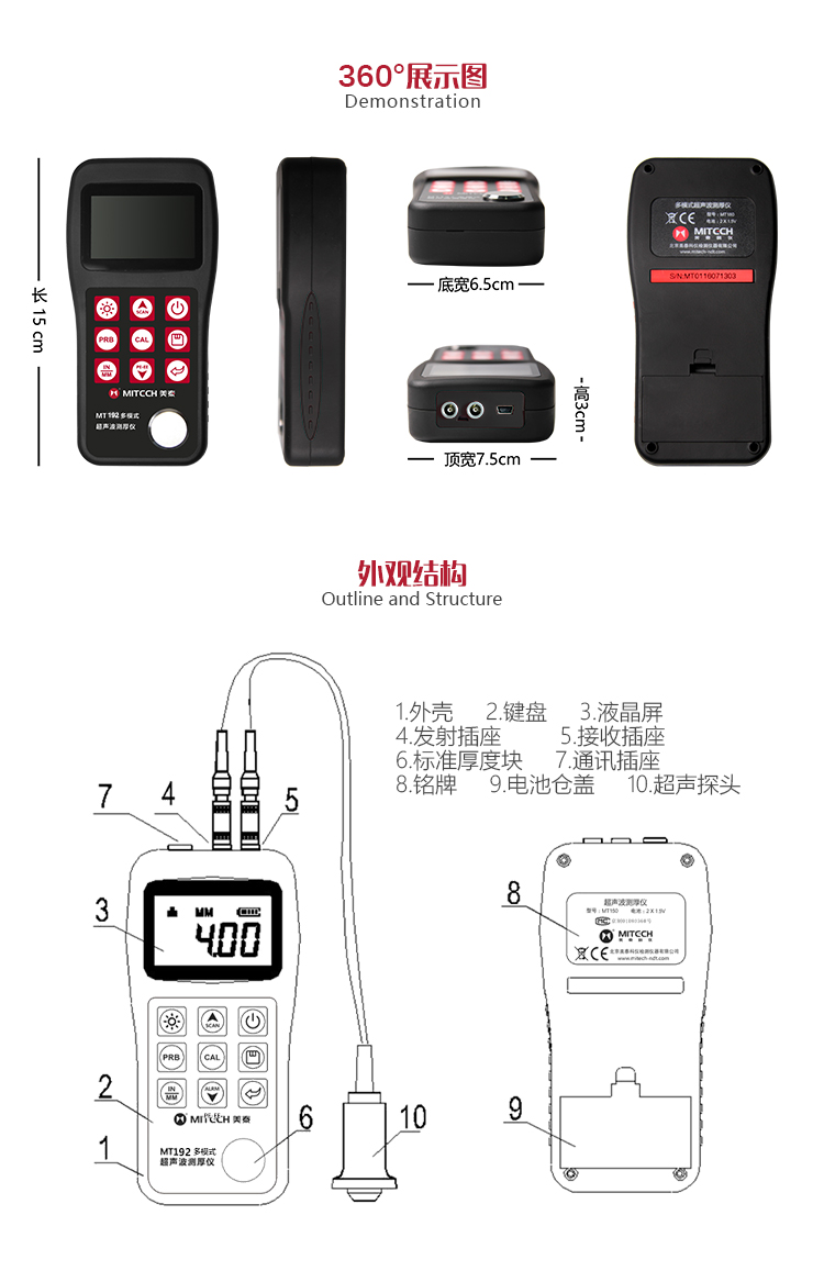 | 測厚模式 | 發(fā)射-回波模式(P-E)和回波-回波(E-E)模式 |