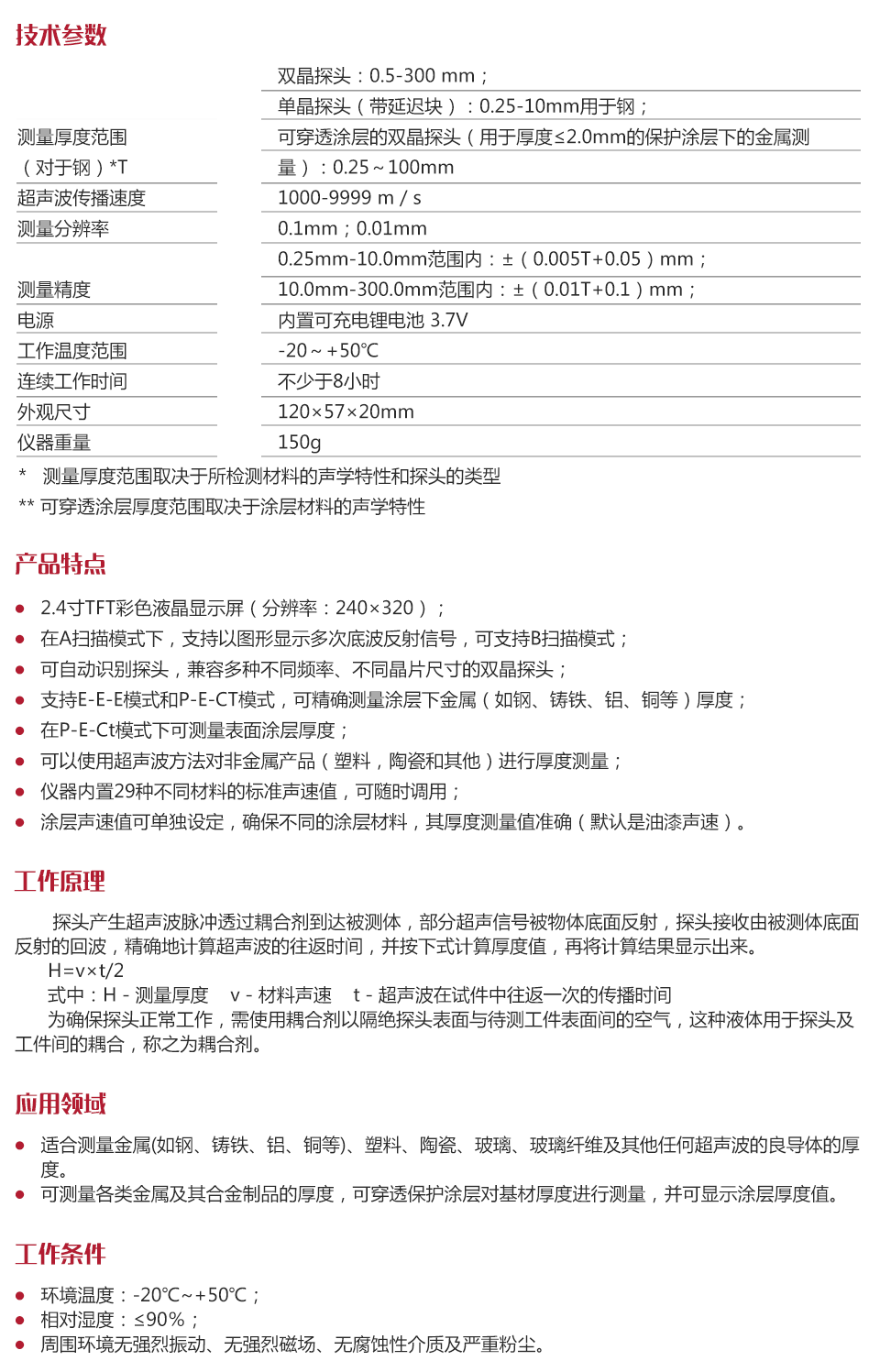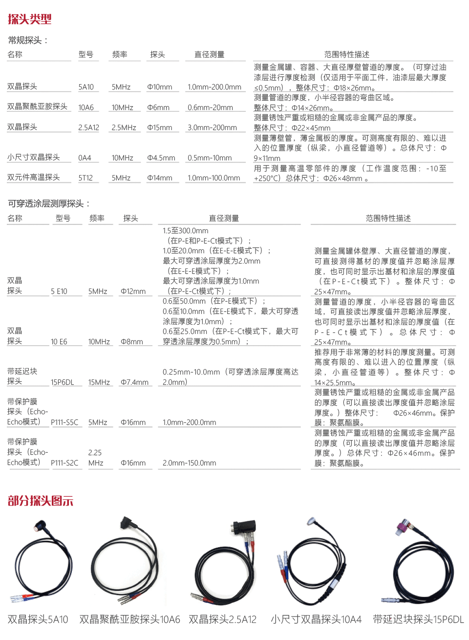 雙晶探頭:0.5-300 mm;