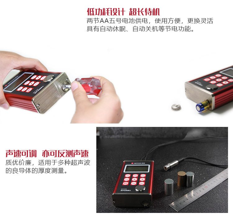 | 美泰系列超聲波測(cè)厚儀,均采用低功耗設(shè)計(jì)理念,超長(zhǎng)待機(jī),MT150/MT160/MT200/MT180/MT192/MT280/MT600/MT660均由兩節(jié)AA五號(hào)電池供電、更換方便。 | |