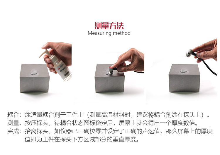 若被測(cè)體表面有大量耦合劑時(shí),當(dāng)探頭離開被測(cè)體表面時(shí),耦合劑會(huì)引起誤測(cè)。因此測(cè)量結(jié)束時(shí),應(yīng)迅速將探頭移開被測(cè)體表面。