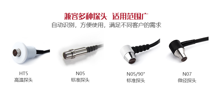 | 探頭直徑 | 測(cè)厚探頭N05直徑10MM、微晶探頭N07直徑6MM、高溫探頭HT5直徑12MM、粗晶探頭N02直徑12MM |