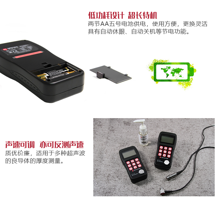 | 美泰系列超聲波測(cè)厚儀,均采用低功耗設(shè)計(jì)理念,超長(zhǎng)待機(jī),MT150/MT160/MT200/MT180/MT192/MT280/MT600/MT660均由兩節(jié)AA五號(hào)電池供電、更換方便。 | |