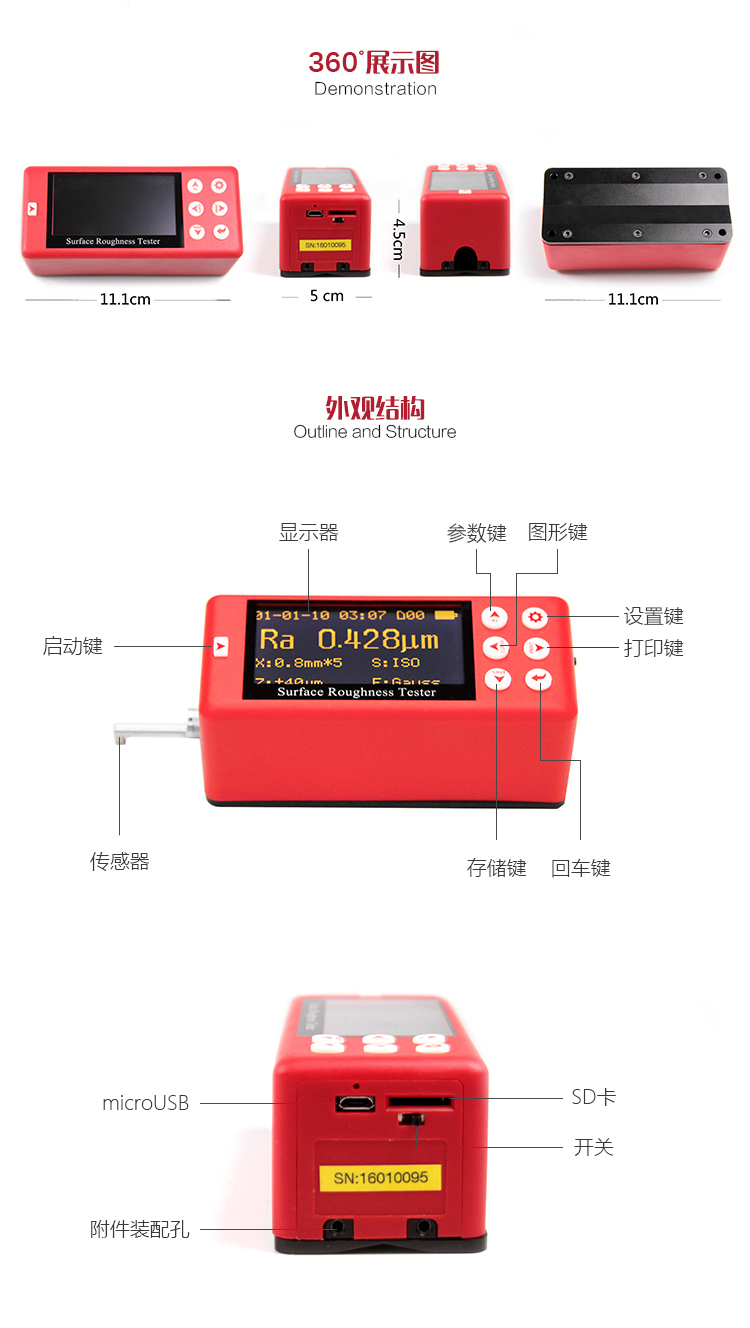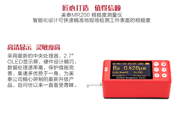產(chǎn)品概述MR200便攜式粗糙度儀是美泰公司精心研制的最新升級(jí)產(chǎn)品,該產(chǎn)品采用當(dāng)前最新的處理器、2.7寸OLED顯示屏,顯著提升了用戶精準(zhǔn)粗糙度測(cè)試的體驗(yàn),硬件設(shè)計(jì)精巧、數(shù)據(jù)處理速率高、保護(hù)措施完善,集諸多優(yōu)勢(shì)于一身,自問世以來一直倍受用戶親睞,它超大量程設(shè)計(jì),檢測(cè)范圍遠(yuǎn)超同類產(chǎn)品,可滿足各類用戶的需求,通過MICRO-USB接口或標(biāo)準(zhǔn)藍(lán)牙模塊及SD存儲(chǔ)卡,可實(shí)現(xiàn)無線遙控啟動(dòng)、測(cè)量;支持現(xiàn)場(chǎng)藍(lán)牙打印機(jī)無線通訊,通過PC海量存儲(chǔ)數(shù)據(jù)。被廣泛地應(yīng)用于各種精密金屬加工制造工藝環(huán)節(jié)的質(zhì)量控制,是提高生產(chǎn)合格率、節(jié)約成本必備的專業(yè)精密儀器。
