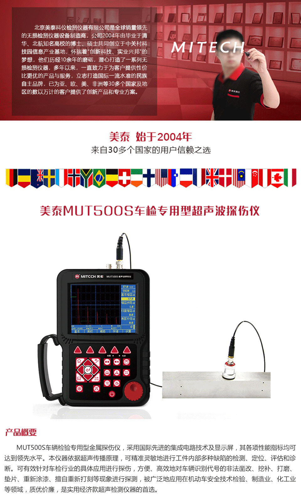產(chǎn)品概述MUT500S車輛檢驗(yàn)專用型金屬探傷儀,采用國際先進(jìn)的集成電路技術(shù)及顯示屏,其各項(xiàng)性能指標(biāo)均可達(dá)到領(lǐng)先水平。本儀器依據(jù)超聲傳播原理,可精準(zhǔn)靈敏地進(jìn)行工件內(nèi)部多種缺陷的檢測、定位、評(píng)估和診斷??捎行п槍嚈z行業(yè)的具體應(yīng)用進(jìn)行探傷,方便、高效地對車輛識(shí)別代號(hào)的非法鑿改、挖補(bǔ)、打磨、墊片、重新涂漆、擅自重新打刻等現(xiàn)象進(jìn)行探測,被廣泛地應(yīng)用在機(jī)動(dòng)車安全技術(shù)檢驗(yàn)、制造業(yè)、化工業(yè)等領(lǐng)域,質(zhì)優(yōu)價(jià)廉,是實(shí)用經(jīng)濟(jì)款超聲檢測儀器的首選。