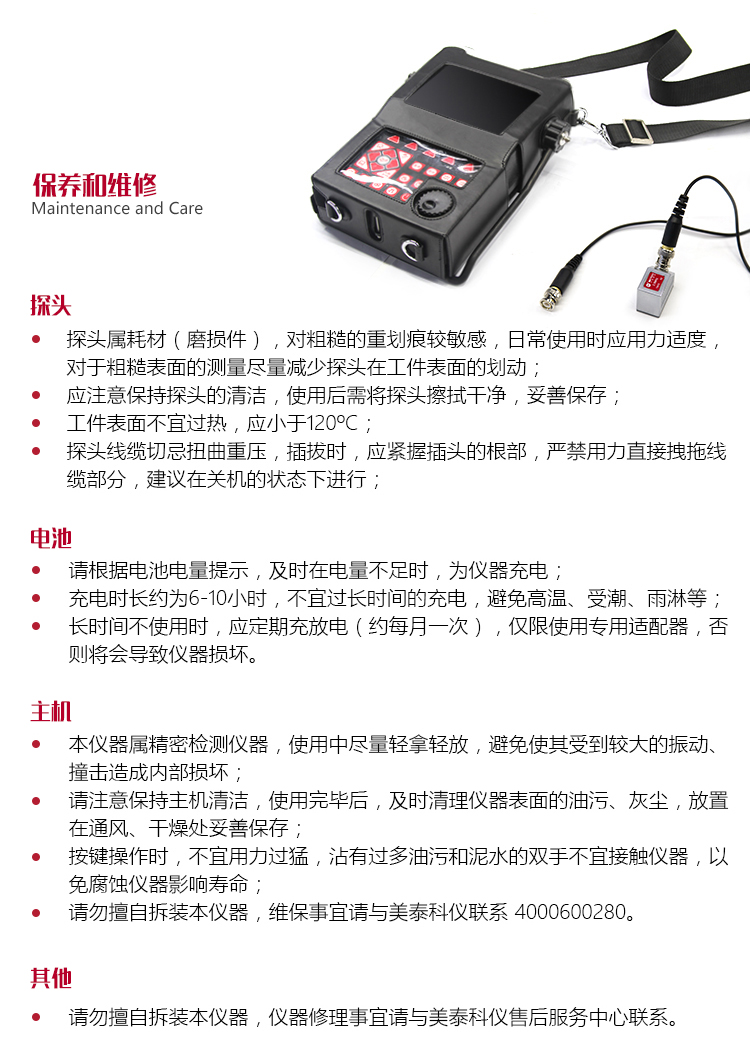 | 美泰超聲波探傷儀附有專用的隨機(jī)裝箱資料。包括產(chǎn)品合格證、保修卡、產(chǎn)品說(shuō)明書、裝箱清單。隨機(jī)資料采用專用的銅版紙印制,說(shuō)明書圖文設(shè)計(jì),美觀、易懂、便于長(zhǎng)久保存。注:美泰品牌系列產(chǎn)品的隨機(jī)資料均可登陸www.zg6899.com下載電子版。 | |