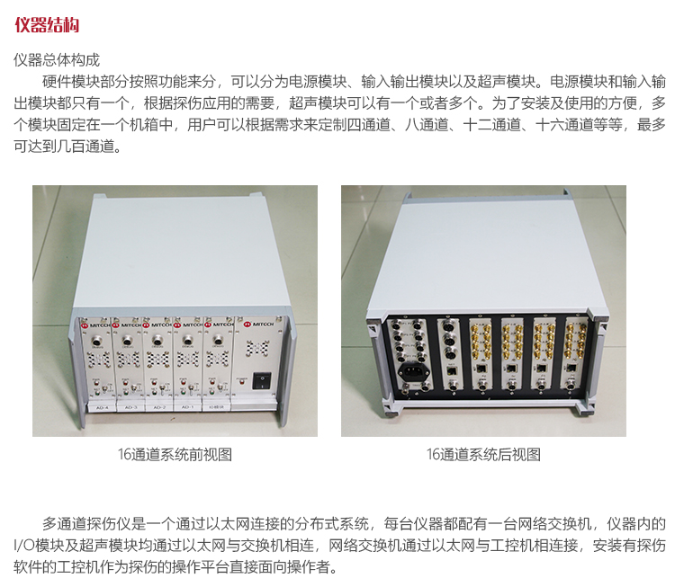 工作原理MUTSX多通道探傷系統(tǒng)由儀器和機械兩部分組成。在實際應(yīng)用中,需要根據(jù)探傷條件及需求來確定通道的數(shù)量及探頭的類型。 在探傷時,機械部分負(fù)責(zé)導(dǎo)入工件并對準(zhǔn)儀器探頭,探頭連接超聲收發(fā)模塊,每個超聲模塊再通過以太網(wǎng)交換機與上位機連接,上位機連接顯示器、打印機、報警裝置等。 探傷軟件可實時顯示待測工件的厚度、工件的缺陷回波、缺陷位置等信息,報警裝置會在發(fā)現(xiàn)異常的時候進(jìn)行聲光報警,噴標(biāo)裝置可在工件存有缺陷的位置噴出顏色標(biāo)記,每個工件探傷過程都可以保存為探傷記錄文件以提供檢索及生成探傷報告。