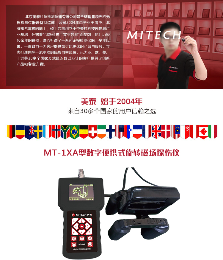 工作原理美泰MT-1XA型數(shù)字便攜式旋轉(zhuǎn)磁場(chǎng)探傷儀,基于漏磁場(chǎng)吸附磁粉的原理,通過觀察吸附磁粉的疏密程度來實(shí)現(xiàn)探傷。它標(biāo)配交叉型磁軛探頭,四腳滾輪設(shè)計(jì)可輕松實(shí)現(xiàn)連續(xù)全方位探傷,讓探傷更省力。采用大容量鋰電池組為儀器提供磁化電源,解決了傳統(tǒng)磁粉探傷儀依賴220V電源的弊端,功耗低,探傷效率高,使用方便,電池可在線充電,亦可脫機(jī)充電。內(nèi)置工業(yè)高清攝像頭,可實(shí)時(shí)拍攝記錄檢測(cè)結(jié)果,將實(shí)拍的缺陷示意圖通過PC機(jī)輸出報(bào)告、分析探傷結(jié)果,可使企業(yè)質(zhì)量控制更具可追溯性依據(jù)。被廣泛的應(yīng)用于焊縫、管道、鍋爐等工件表面無損檢測(cè),是磁粉探傷數(shù)字化的革新產(chǎn)品。